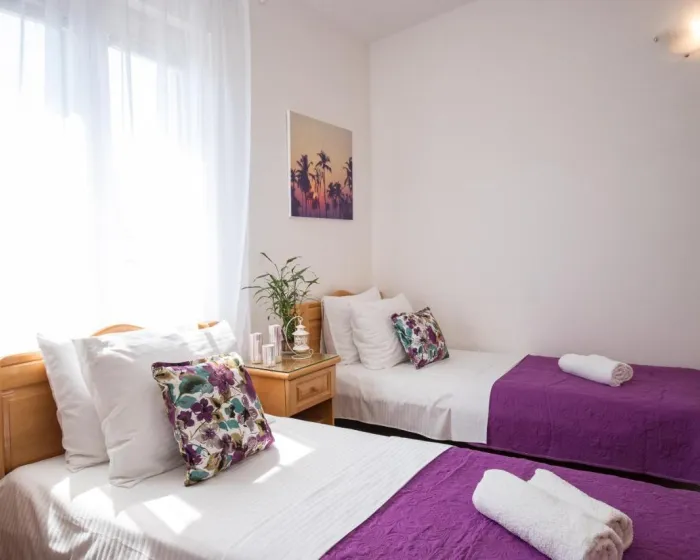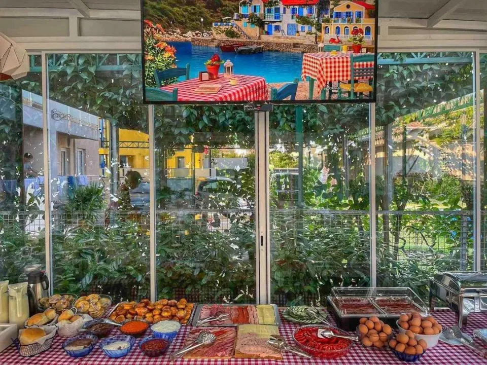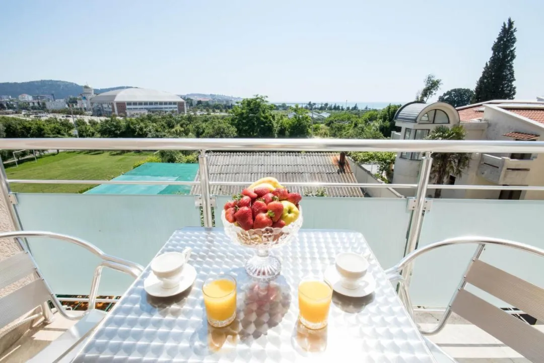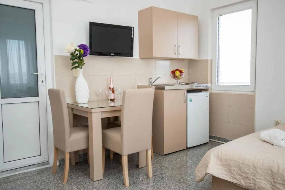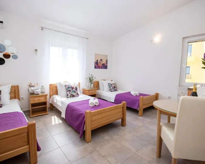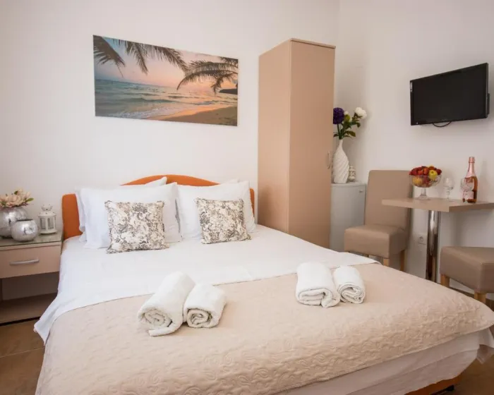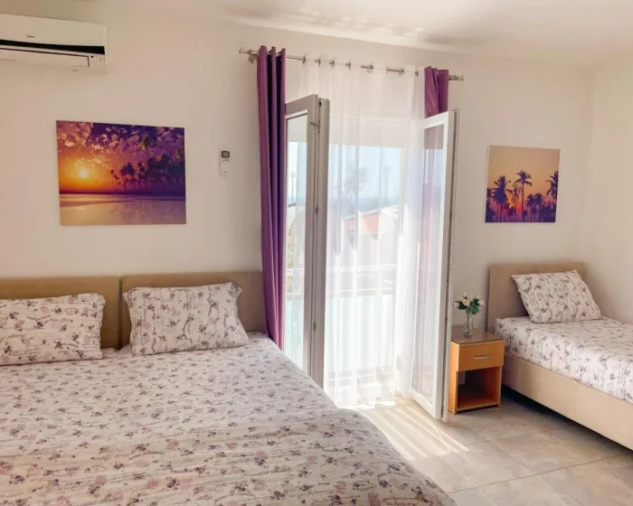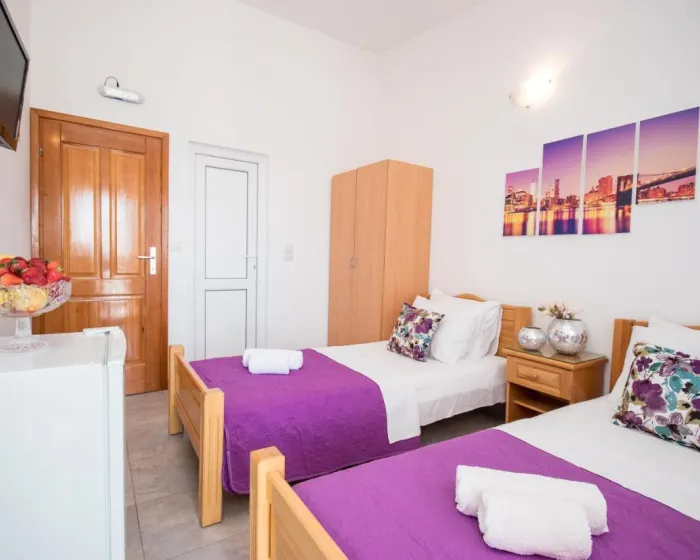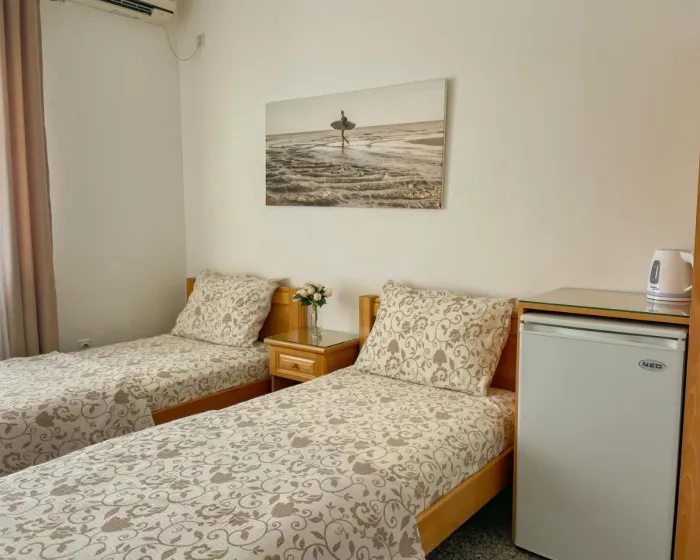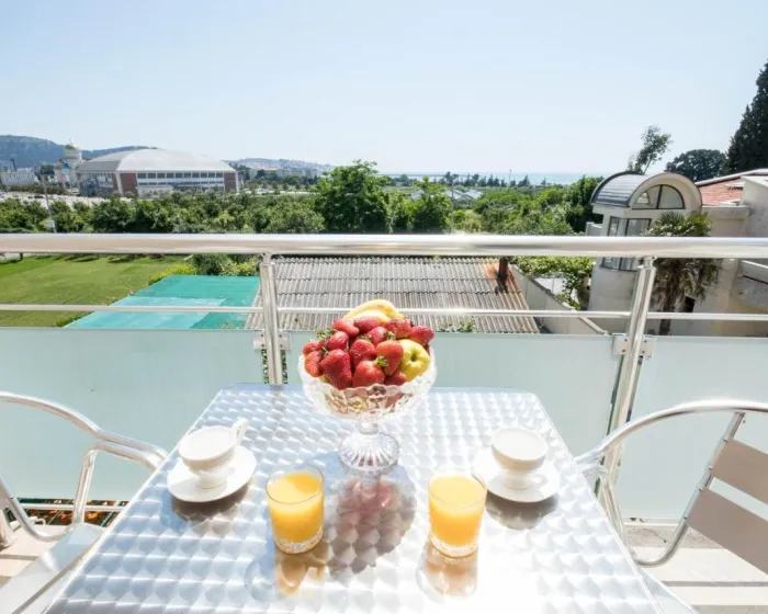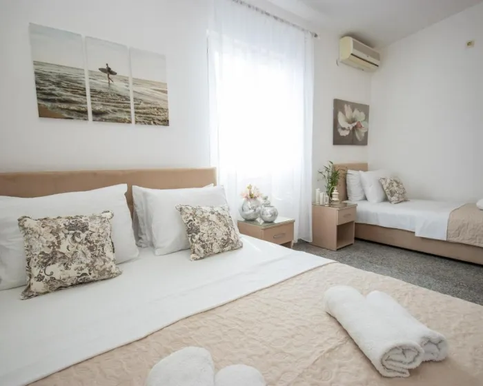 Sobe su opremljene klima uređajem. Gosti imaju predivan pogled na more sa balkona ili terase, koji su uključeni u standardne sadržaje nekih soba. Sobe imaju bračni krevet, krevet queen size ili sofu na razvlačenje. Dodatni kreveti mogu biti zatraženi. Dodatni sadržaji uključuju frižider i aparat za kafu/čaj. Takođe su obezbeđeni televizor sa satelitskim/kablovskim kanalima i WiFi (bez dodatne naplate). Kupatila su opremljena tušem i fenom za kosu. Kao posebna pogodnost, kupatila su opremljena kozmetičkim proizvodima i izborom peškira. Smeštaj ima sobe za nepušače.