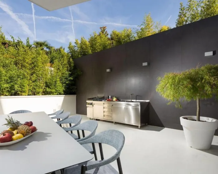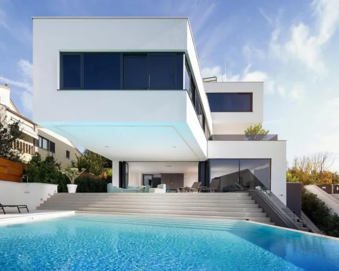Prostrana kuća za odmor sa terasom i pogledom na more ima 6 spavaćih soba, dnevni boravak, TV, opremljenu kuhinju sa mašinom za pranje sudova i rernom, kao i 6 kupatila sa kadom. Radi veće privatnosti, smeštaj ima zaseban ulaz.