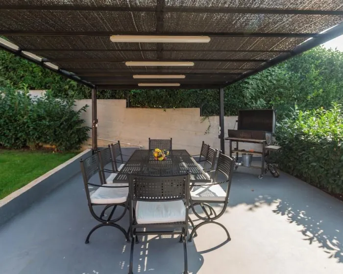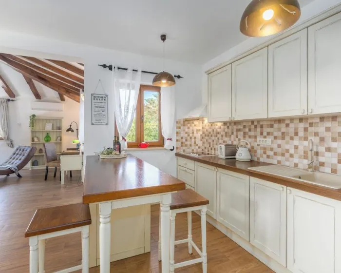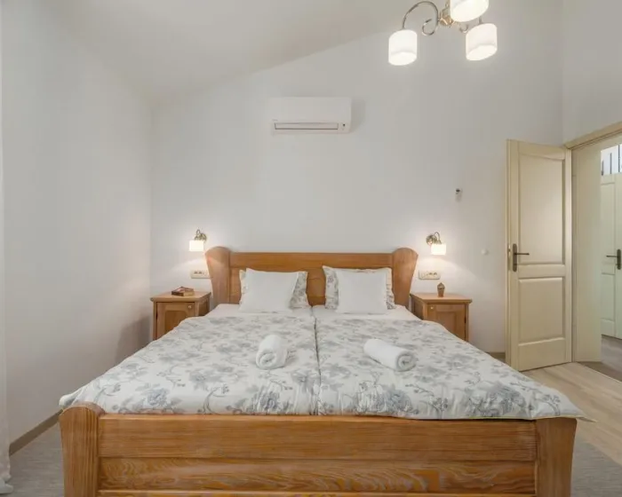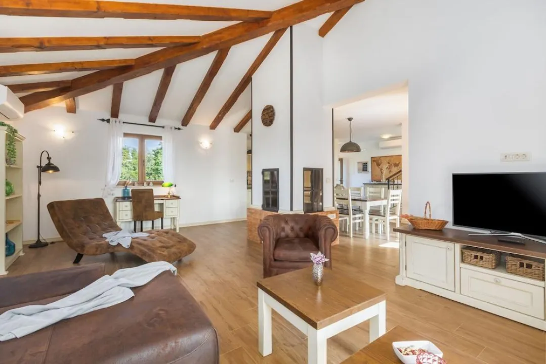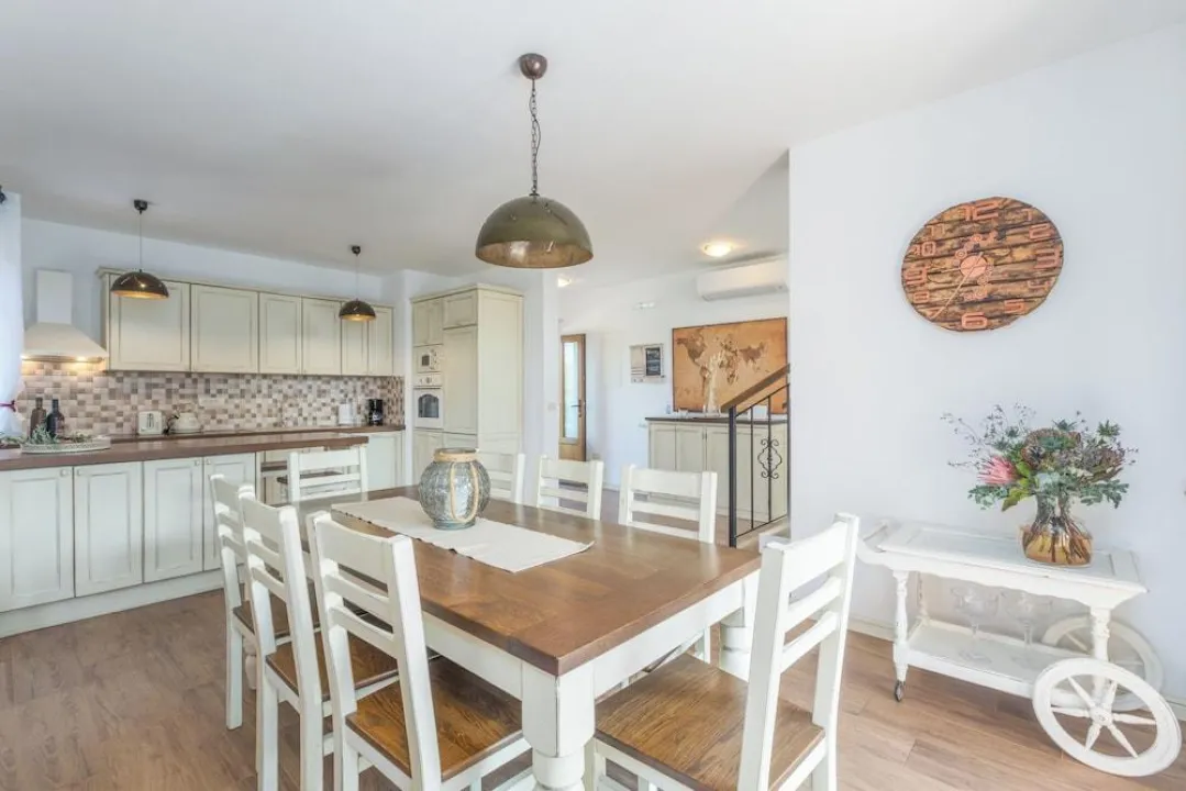 Udobno se smestite u ovoj vili sa klima uređajem, koja ima privatni bazen. Kuhinja je opremljena velikim frižiderom, rernom i šporetom. Pored toga, mikrotalasna pećnica i veš mašina su dostupni.