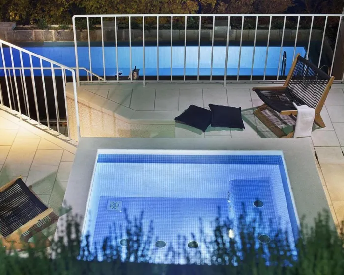 Klimatizovana kuća za odmor sastoji se od 5 spavaćih soba, 2 dnevna boravka, potpuno opremljene kuhinje sa mašinom za pranje sudova i aparatom za kafu, i 7 kupatila sa tušem i fenom za kosu. Radi veće privatnosti, smeštajna jedinica ima privatni ulaz.