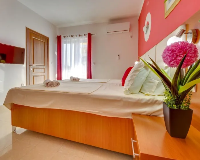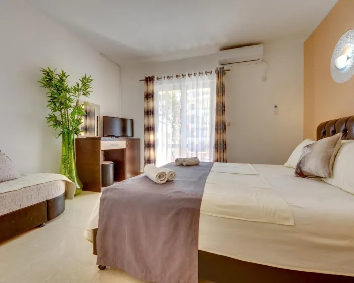 Klima uređaj i centralno grejanje osiguravaju da sobe održavaju udobne temperature. Gosti mogu uživati u pogledu na planine sa balkona ili terase. Sobe imaju bračni krevet i sofu. Sadržaji uključuju frižider, mini frižider, televizor sa satelitskim/ kablovskim kanalima i WiFi (bez dodatne naknade). Kupatila su opremljena tuš kabinom i uključuju fen za kosu. Kozmetički proizvodi i izbor peškira pružaju dodatnu udobnost u kupatilima. Smeštaj ima porodične sobe i sobe za nepušače.