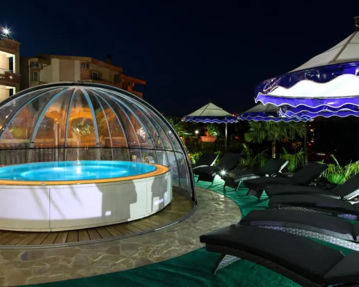 Postoje unutrašnji i spoljašnji bazeni i dečiji deo za plivanje. Ležaljke i suncobrani su dostupni na terasi za sunčanje. Topla kada u oblasti bazena obećava čistu relaksaciju. Postoji mnogo načina za opuštanje ili aktivnost u smeštaju, uključujući tenis, teretanu, stoni tenis, spa centar, saunu i kozmetički salon. Kazino nudi zabavu. Copyright GIATA 2004 - 2024. Višejezično, powered by www.giata.com for client no. 124971