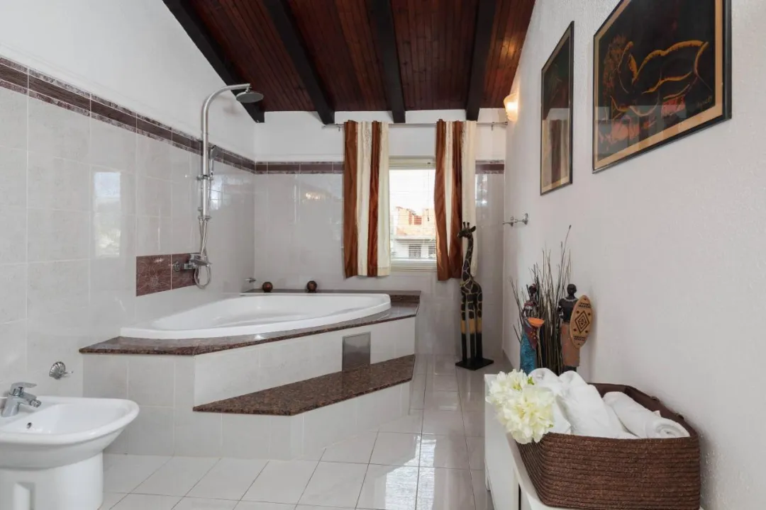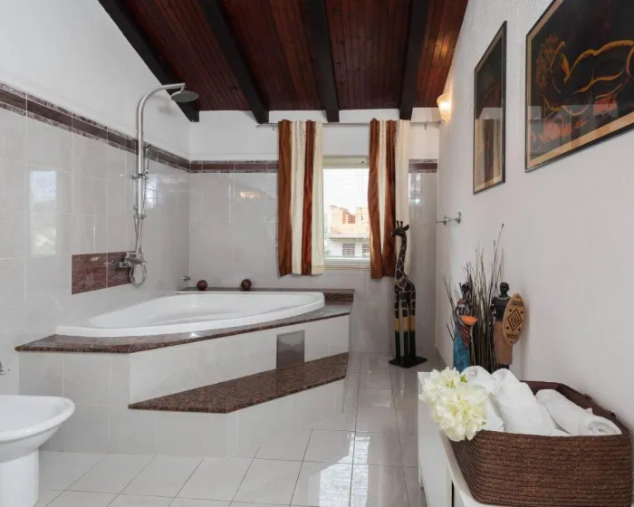 Ova prostrana vila ima DVD player, potpuno opremljenu kuhinju sa mašinom za pranje sudova, rernom i mikrotalasnom pećnicom, 2 dnevna boravka sa prostorom za sedenje i trpezarijom, 5 spavaćih soba i 3 kupatila sa bideom i kadom. Jedinica je klimatizovana i ima terasu sa prostorom za ručavanje na otvorenom, kao i flat-screen TV sa satelitskim kanalima. Vila nudi posteljinu, peškire i uslugu pranja veša.