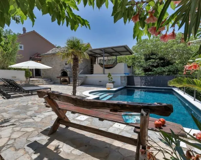 Prostrana vila ima 4 spavaće sobe, 3 kupatila, posteljinu, peškire, flat-screen TV, potpuno opremljenu kuhinju i terasu sa pogledom na vrt. Za dodatnu privatnost, smeštaj ima privatni ulaz.