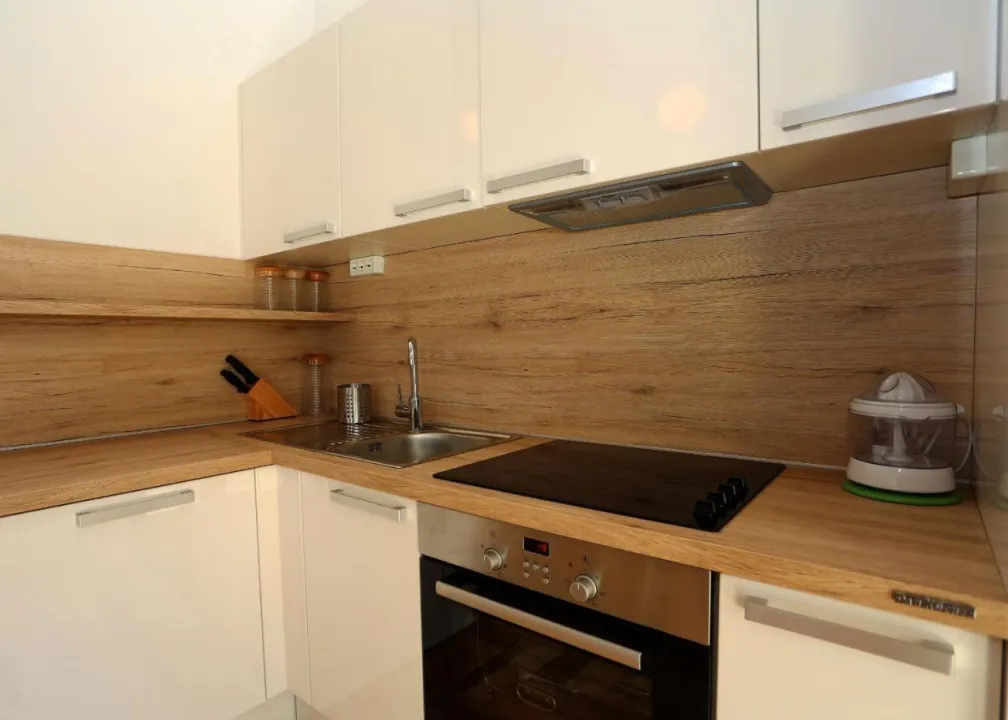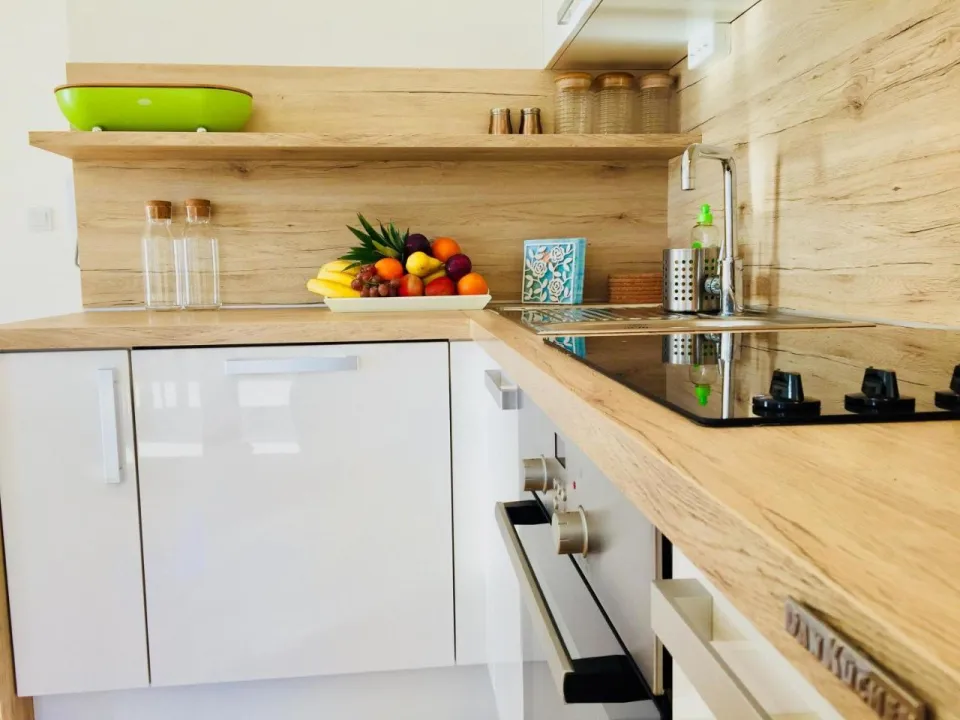 Apartman gostima pruža terasu sa pogledom na more, prostorom za sedenje, SAT TV, potpuno opremljenom kuhinjom sa mašinom za sudove i rernom, kao i privatno kupatilo sa tušem i fenom za kosu. Mikrotalasna pećnica, toster i frižider takođe su obezbeđeni, kao i aparat za kafu i čajnik. U apartmanu su obezbeđeni posteljina i peškiri.