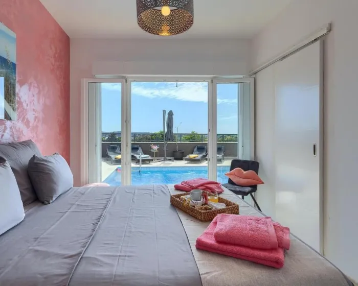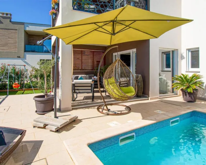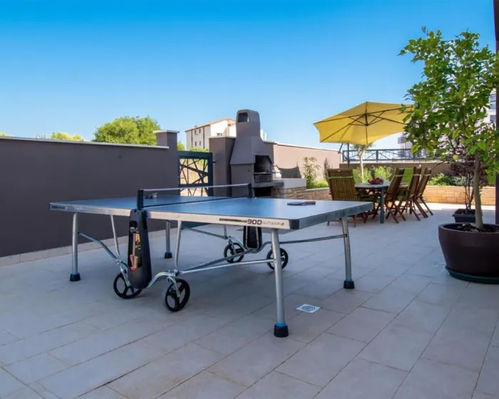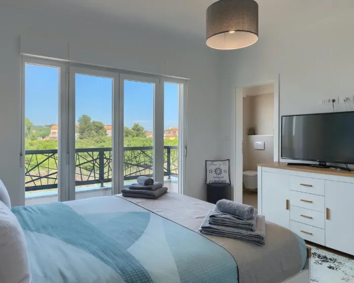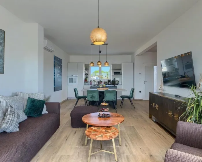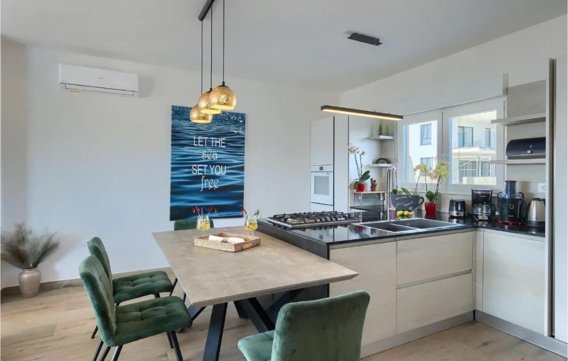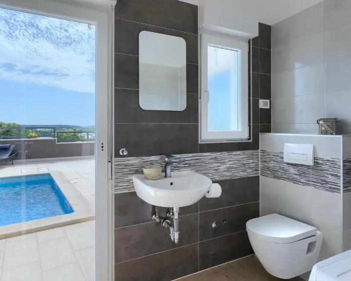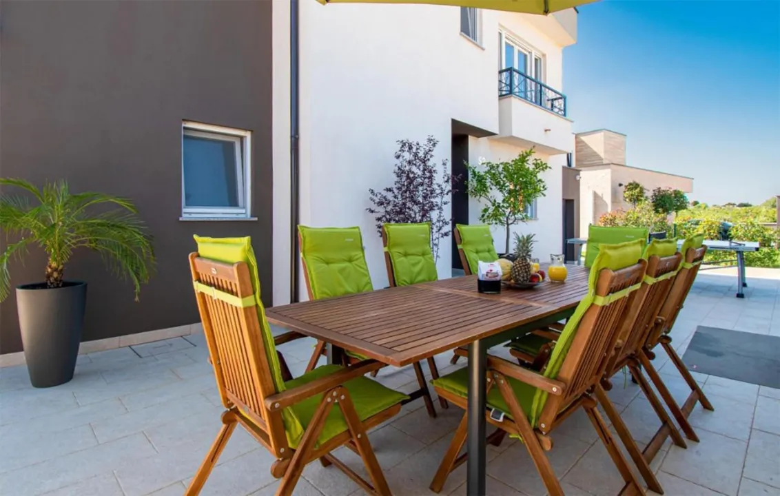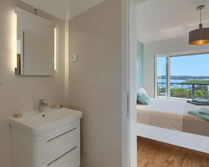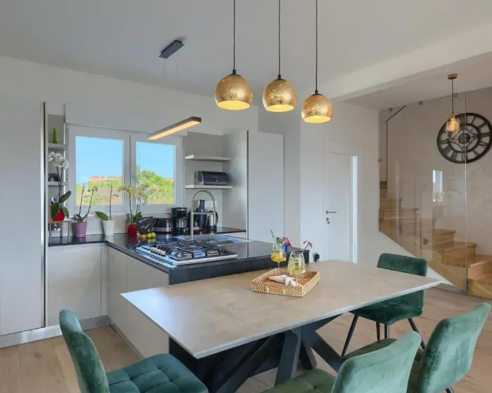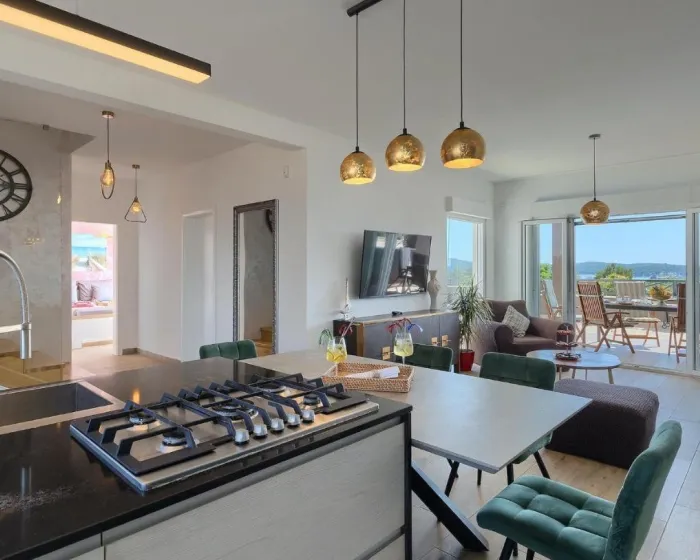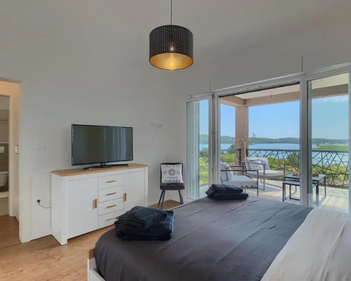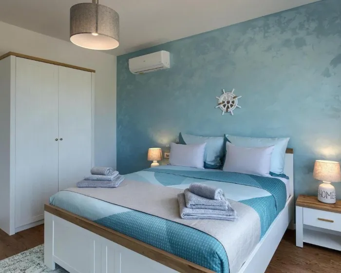 Prostrana kuća za odmor ima 4 odvojene spavaće sobe, 4 kupatila, potpuno opremljenu kuhinju sa trpezarijom i mašinom za pranje sudova, kao i dnevni boravak sa TV-om. Za dodatnu privatnost, smeštaj ima poseban ulaz.