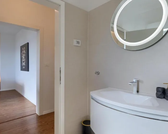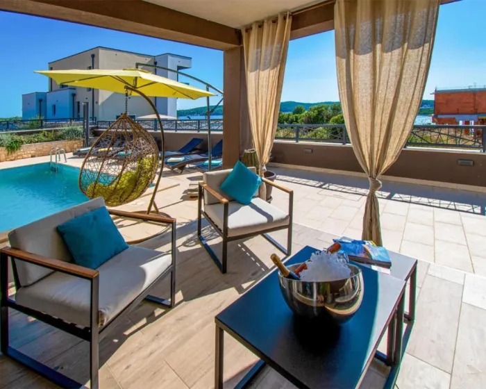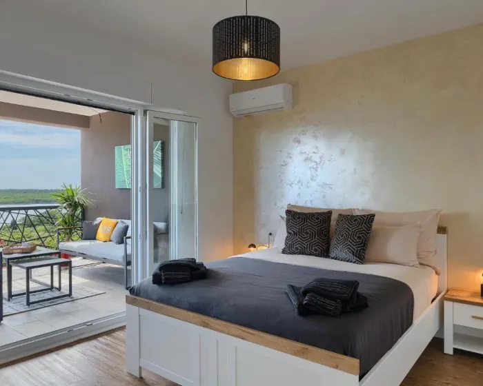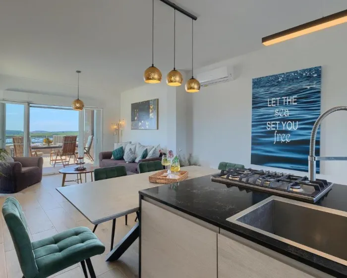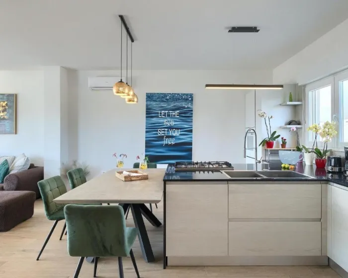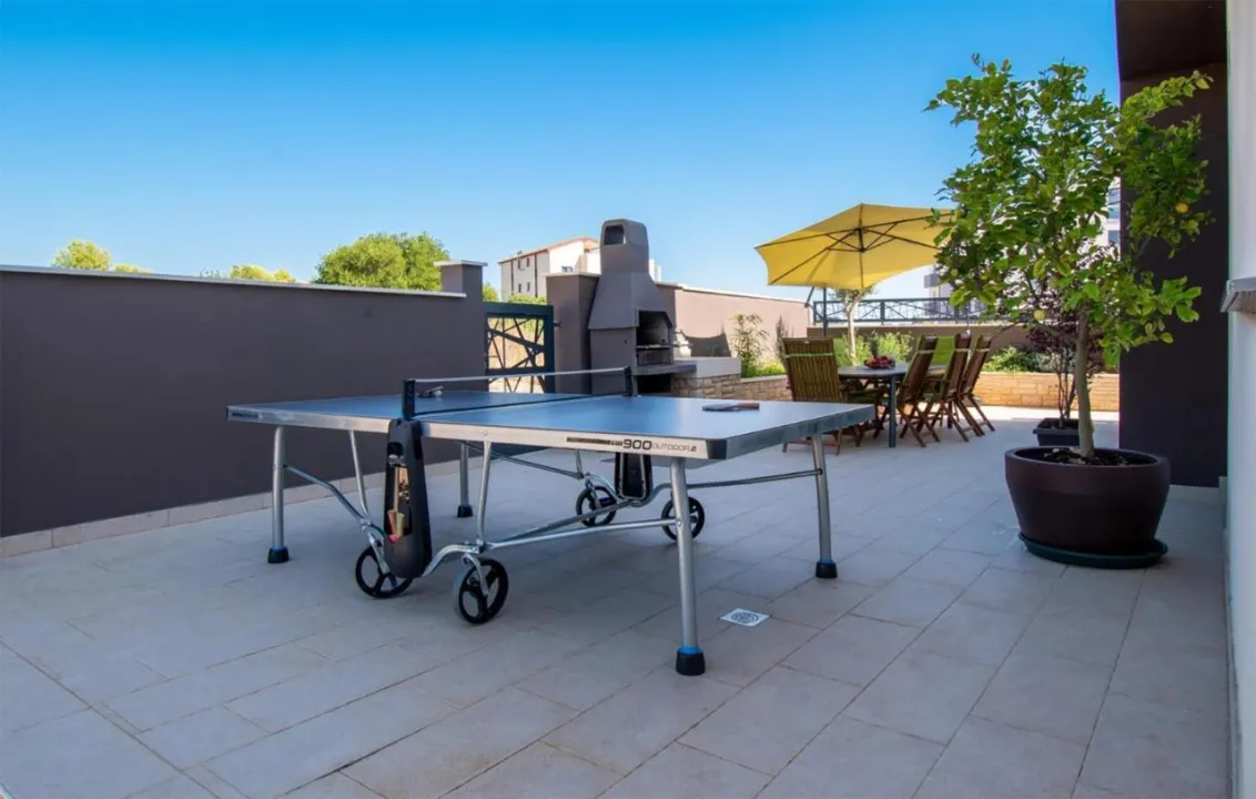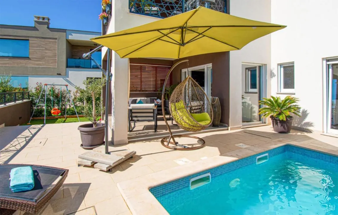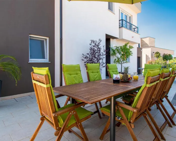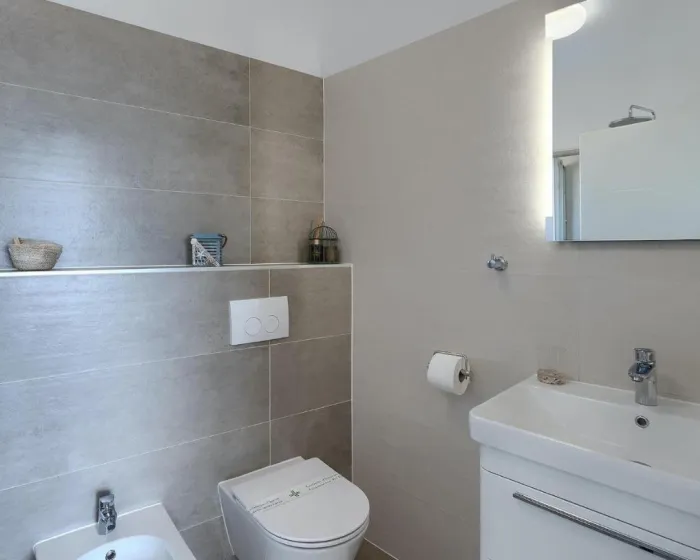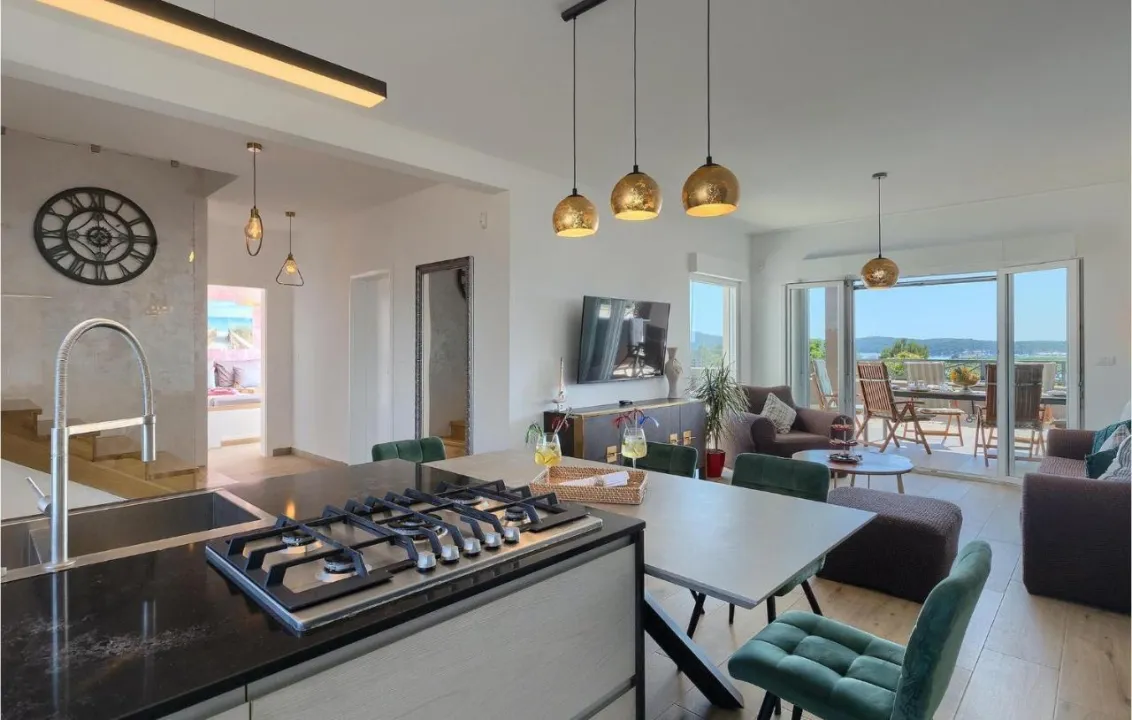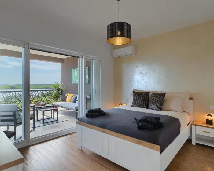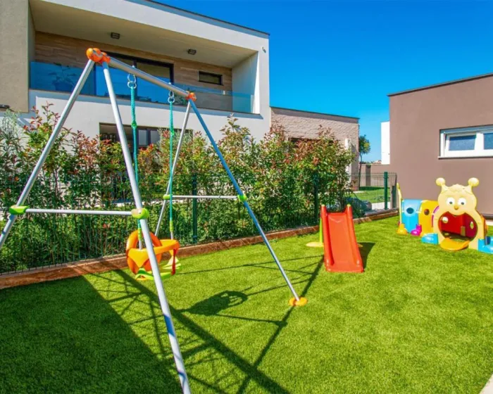 Prostrana kuća za odmor ima 4 odvojene spavaće sobe, 4 kupatila, potpuno opremljenu kuhinju sa trpezarijom i mašinom za pranje sudova, kao i dnevni boravak sa TV-om. Za dodatnu privatnost, smeštaj ima poseban ulaz.