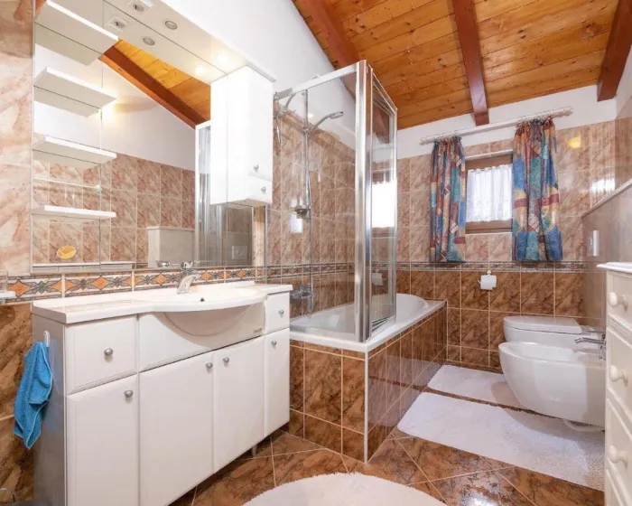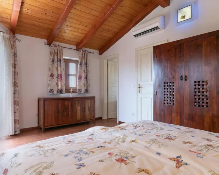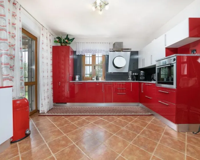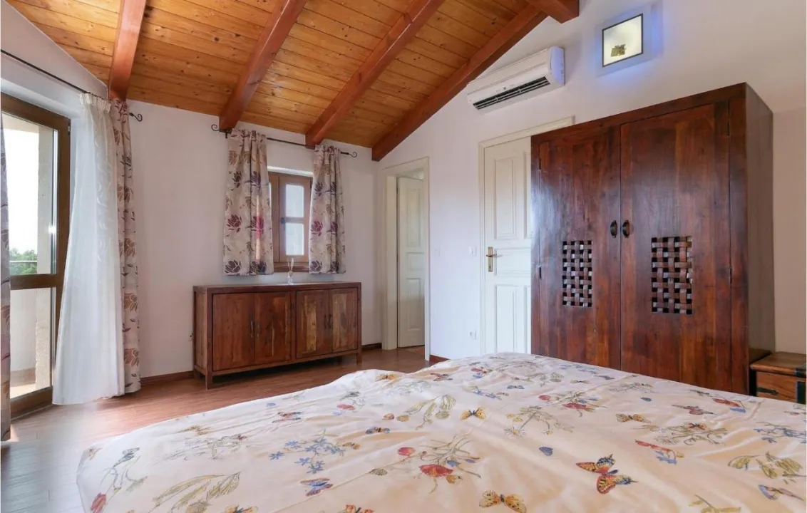 Prostrana kuća za odmor opremljena je sa 4 odvojene spavaće sobe, 3 kupatila, potpuno opremljenom kuhinjom sa trpezarijom i mašinom za pranje sudova, i dnevnim boravkom sa TV-om. smeštaj nudi kamin.