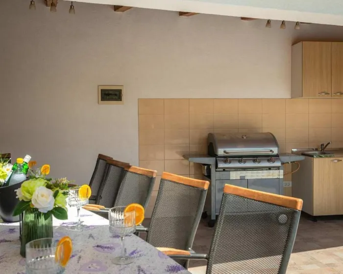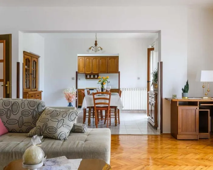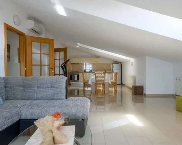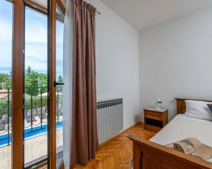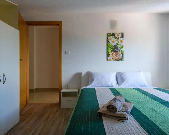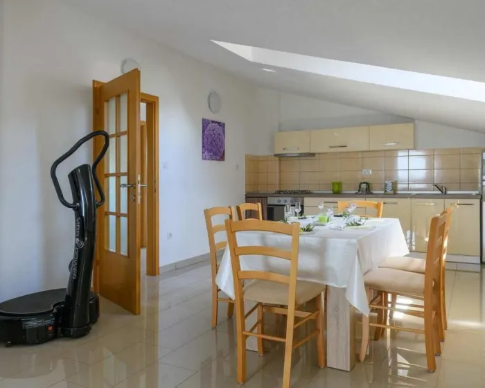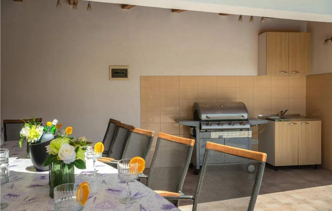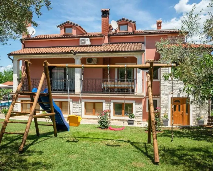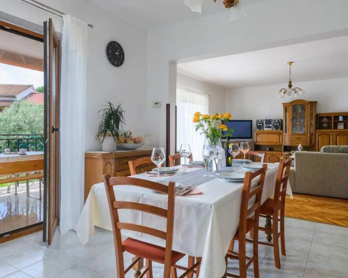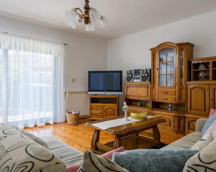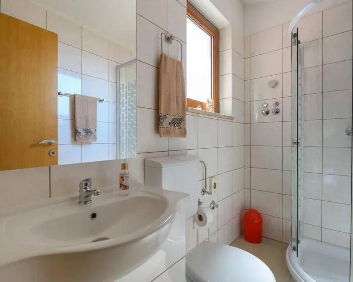Prostrana kuća za odmor ima 6 odvojenih spavaćih soba, 4 kupatila, potpuno opremljenu kuhinju sa trpezarijom i mašinom za pranje sudova, te 2 dnevna boravka sa TV-om. Za dodatnu privatnost, smeštaj ima poseban ulaz.