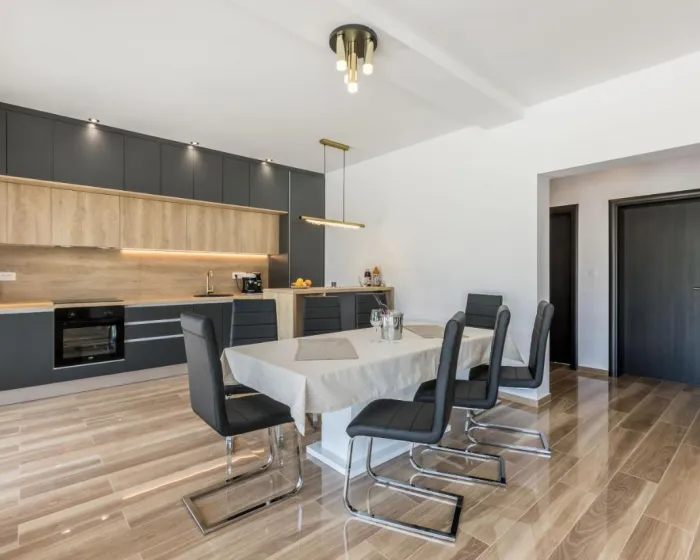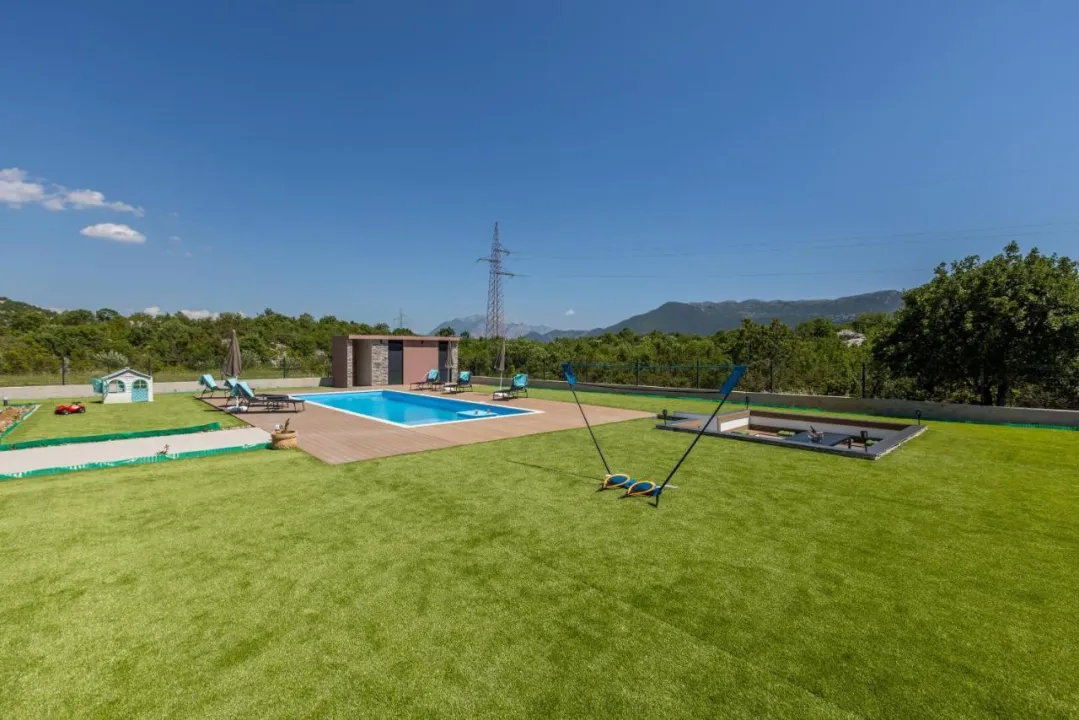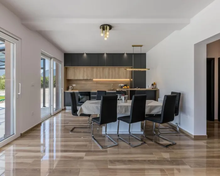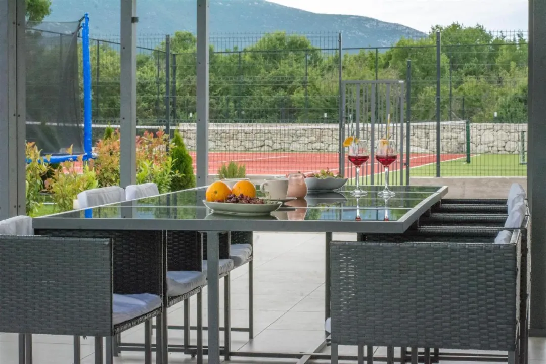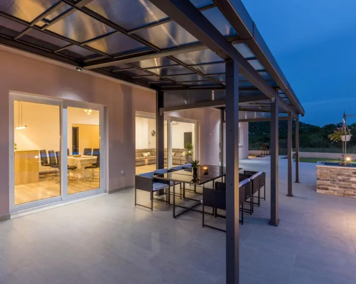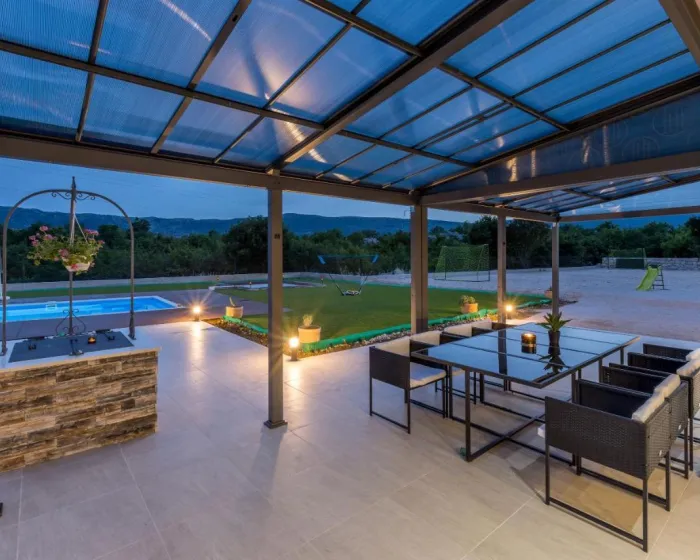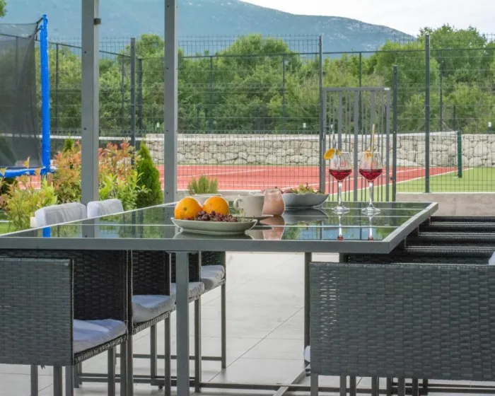 Vila sa 4 spavaće sobe opremljena je dnevnim boravkom sa TV-om sa satelitskim kanalima, potpuno opremljenom kuhinjom sa mašinom za pranje sudova i rernom, kao i 4 kupatila sa fenom za kosu. Peškiri i posteljina dostupni su u vili. Objekat ima prostor za ručavanje na otvorenom.