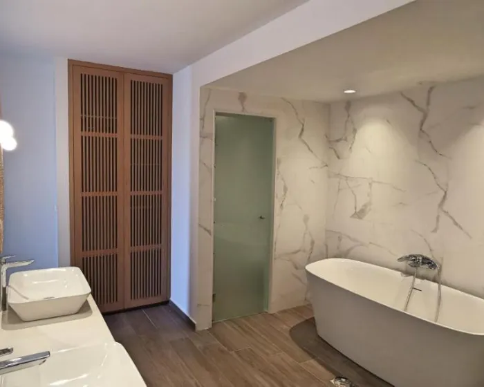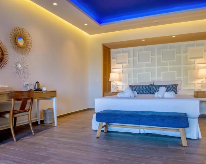 Klima uređaj i centralno grejanje osiguravaju da sobe održavaju udobnu temperaturu. Gosti mogu da se opuste i uživaju u pogledu na more sa balkona ili privatne terase nekih soba. Sobe imaju veliki bračni krevet i kauč na razvlačenje. Dostupne su odvojene spavaće sobe. Na raspolaganju su sef, minibar i radni sto. Dodatni sadržaji uključuju frižider, mini frižider i aparate za pripremu čaja/kafe. Opremljene telefonom, satelitskom televizijom i WiFi-jem, sobe pružaju mnogo načina za povezivanje i zabavu. Papuče su uključene. Kupatila su opremljena tušem. Fen za kosu, bade mantili i telefon su dostupni za svakodnevnu upotrebu. Moguće je rezervisati sobe prilagođene osobama u invalidskim kolicima. Hotel ima sobe za nepušače.