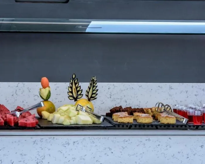 U restoranu, kafiću i baru su dostupni obroci. Moguće je rezervisati polupansion. Doručak i ručak se služe svakog dana. Specijalni obroci, uključujući vegetarijanska jela, su takođe dostupni.