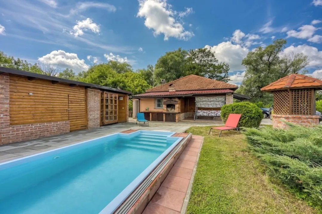 Udobno se smestite u ovoj klimatizovanoj kući za odmor, koja ima kamin i privatni bazen. Kuhinja je opremljena frižiderom, rernom i šporetom. Udobnosti uključuju mikrotalasnu pećnicu i električno kuvalo.