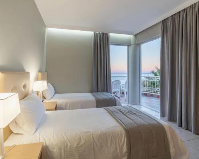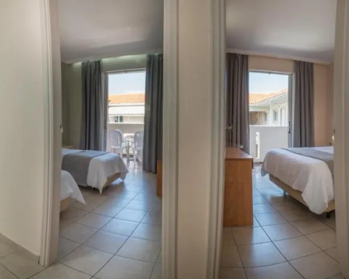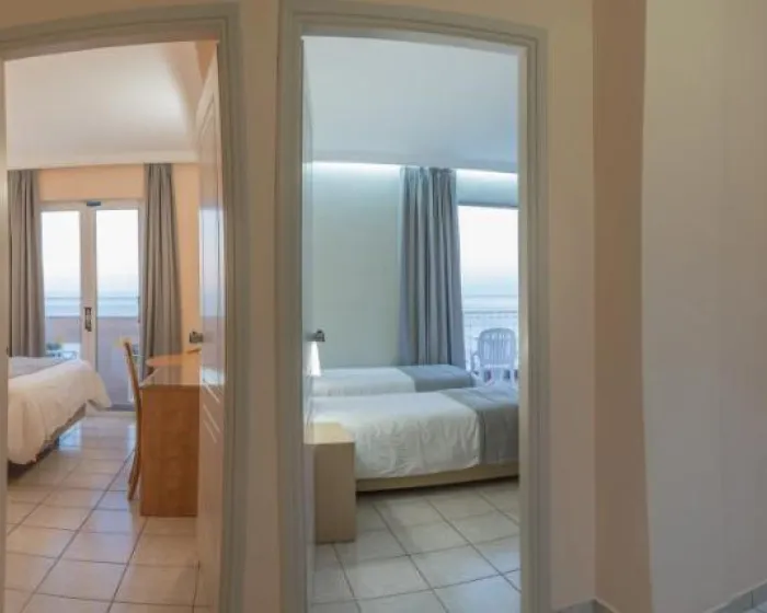 Sobe su opremljene klima uređajem i centralnim grejanjem. Gosti mogu opustiti i uživati u pogledu na more sa terase ili privatne terase nekih soba. Sobe imaju bračni krevet ili krevet queen size. Dodatni kreveti mogu biti zatraženi. Sef pruža sigurno čuvanje lične imovine gostiju. Kuhinja dolazi sa frižiderom, mikrotalasnom pećnicom i aparatom za kafu/čaj. Telefonom, TV-om i WiFi-jem (bez dodatne naplate) je takođe obezbeđeno. Kupatila su opremljena tušem i kadom, kao i fenom za kosu. Gosti takođe mogu rezervisati sobe prilagođene za invalidska kolica sa pristupačnim kupatilima. Apartmanski hotel ima porodične sobe i sobe za nepušače.