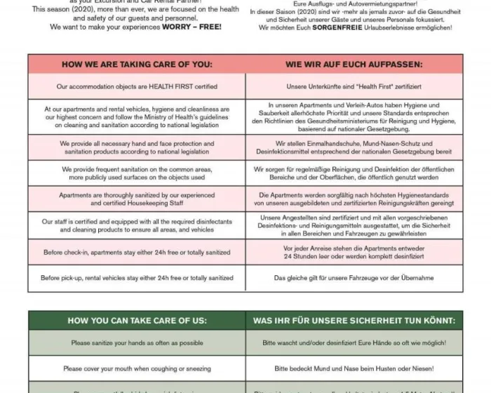 - usluge asistencije na srpskom jeziku tokom trajanja aranžmana (24/7)