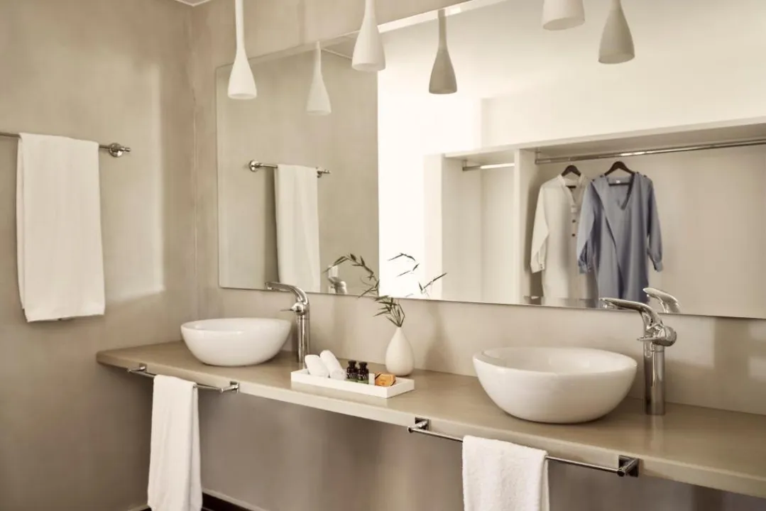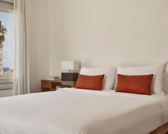 Sobe imaju dnevni boravak, kuhinju i kupatilo. Klima uređaj i individualno podesivo grejanje obezbeđuju ugodne unutrašnje temperature. Gosti se mogu opustiti i uživati u pogledu na more sa balkona ili privatne terase nekih soba. Sobe imaju bračni krevet i kauč na razvlačenje. Gosti takođe mogu rezervisati odvojene spavaće sobe. Dodatni kreveti se mogu zatražiti. Na raspolaganju su i sef, mini bar i radni sto. Dodatne karakteristike uključuju mini frižider i stanicu za čaj/kafu. Telefon sa direktnim biranjem, televizor sa satelitskim/kablovskim kanalima, radio, stereo sistem, CD plejer, DVD plejer i ViFi pružaju sve što je neophodno za ugodan odmor. Sadržaji u sobama uključuju papuče i dnevne novine. Kupatila su opremljena tušem i kadom. Za svakodnevnu upotrebu na raspolaganju su fen za kosu, ogrtači i telefon. Kao dodatnu pogodnost, kupatila imaju kozmetičke proizvode. Mogu se rezervisati sobe prilagođene osobama u invalidskim kolicima. Porodične sobe su dostupne roditeljima sa decom.