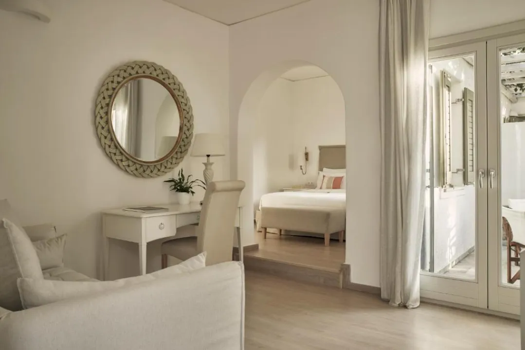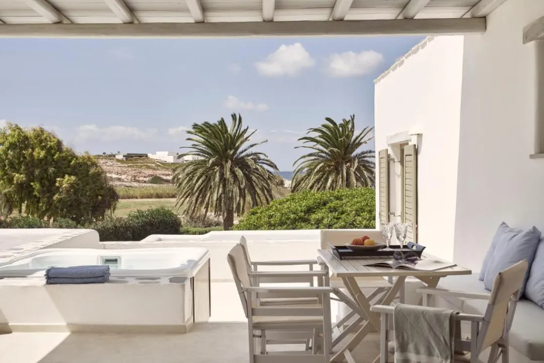 Yria Island Boutique Hotel & Spa Paros luksuzni hotel se nalazi na samo 100 m od plaže Parasporos, oko 3 km od grada Parikija i 6 km od grada Nausa. Hotel raspolaže sa 65 soba za nepušače, uključujući 31 junior apartman, 4 apartmana, 11 apartmana i 18 dvokrevetnih soba, koje se nalaze na 2 sprata i do kojih se može doći liftom. Osoblje na recepciji u predvorju koje govori engleski i francuski jezik spremno je da vam pomogne pri prijavi i odjavi. Sadržaji dostupni u hotelu uključuju uslugu skladištenja prtljaga, sef i uslugu menjanja valuta. Bežični pristup internetu je obezbeđen u javnim prostorima. Turistički desk nudi pomoć pri rezervisanju ekskurzija. Dostupni su objekti prilagođeni invalidskim kolicima. Brojne prodavnice, uključujući supermarket i suvenirnicu, odlične su za kupovinu ili samo pregledavanje. Bašta pruža dodatni prostor za odmor i opuštanje na otvorenom. Dodatne pogodnosti uključuju TV salu i biblioteku. Gosti koji dolaze automobilom mogu parkirati svoja vozila u garaži (uz doplatu) ili na parkingu. Ostale usluge i sadržaji uključuju uslugu čuvanja dece, uslugu čuvanja dece, uslugu iznajmljivanja automobila, medicinsku pomoć, uslugu transfera, poslugu u sobu, uslugu poziva alarma, uslugu pranja veša, perionicu veša na novčiće, hotelskog lekara i hotelski prevoz bus. Gostima je na raspolaganju ostava za bicikle. Postoji i usluga iznajmljivanja bicikala. Dnevne novine su dostupne za kupovinu.