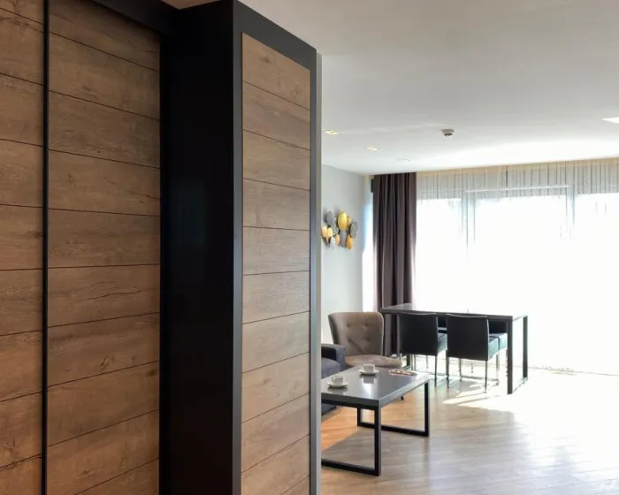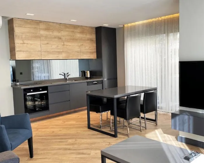 Sobe imaju kuhinju i kupatilo, a centralno grijanje osigurava baš pravu temperaturu. Sobe imaju bračni krevet i kauč na razvlačenje. Dodatni kreveti se mogu zatražiti. Sef obezbjeđuje sigurno čuvanje lične imovine gostiju. Telefon i WiFi (bez dodatne naknade) osiguravaju optimalnu udobnost. Apartmanski hotel ima porodične sobe i sobe za nepušače.