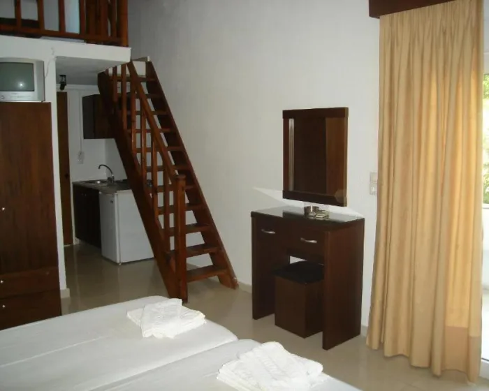 Klima uređaj obezbeđuje da sobe održavaju prijatne temperature. Gosti mogu uživati u pogledu na vrt sa balkona ili terase. Sobe sadrže bračni krevet. Takođe je obezbeđen kuhinjski deo sa frižiderom. Sobe su opremljene direktnom telefonskom linijom, TV-om i WiFi-jem, pružajući gostima mnogo načina da ostanu povezani i zabavljaju se. Kupatila su opremljena tuš kabinom i kadom, kao i telefonom. Porodične sobe su na raspolaganju za roditelje sa decom.