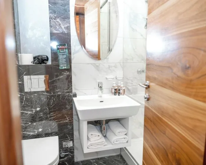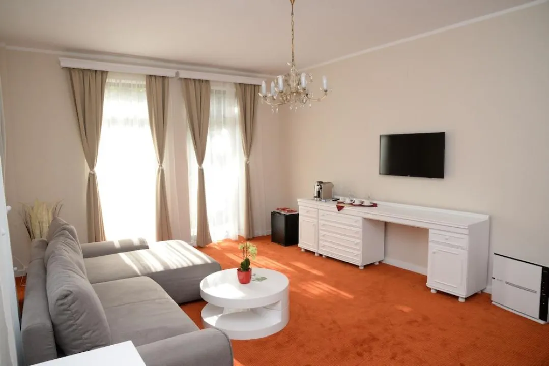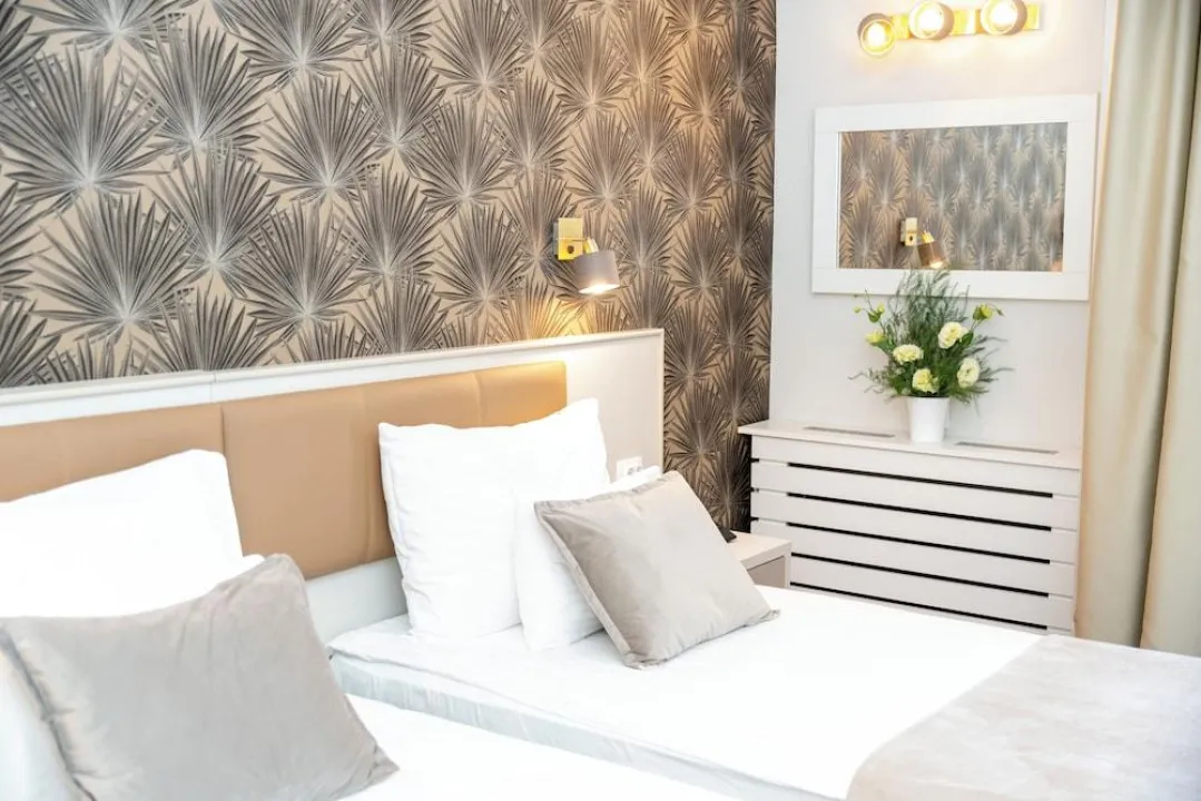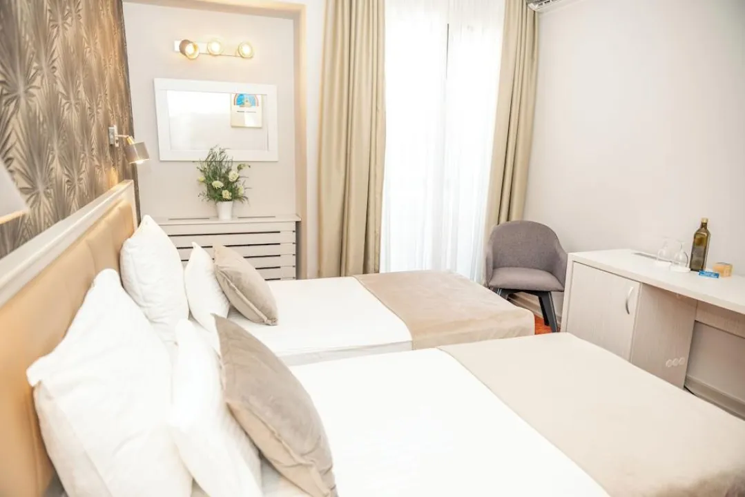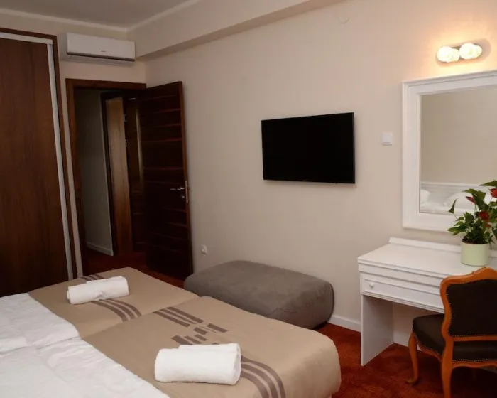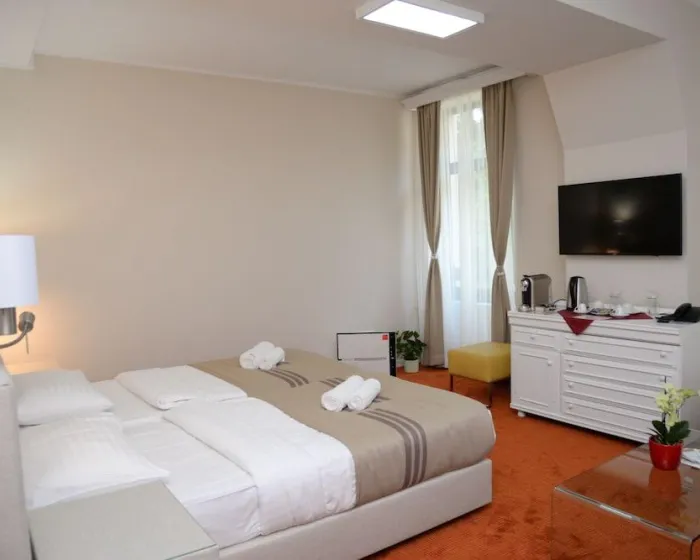 Sobe su opremljene centralnim grejanjem. U sobama se nalazi bračni krevet i sofa na razvlačenje. Sadržaji uključuju peglu za pantalone, telefon i WiFi (bez dodatne naplate). Hotel ima porodične sobe i sobe za nepušače.