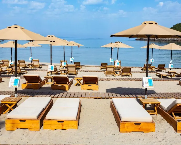 recepcija, sala za doručak, wifi internet, otvoreni bazen, bar pored bazena, ležaljke i suncobrani oko bazena, beach bar, ležaljke i suncobrani na plaži, parking
