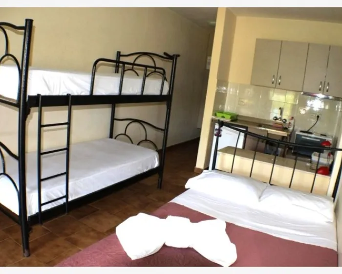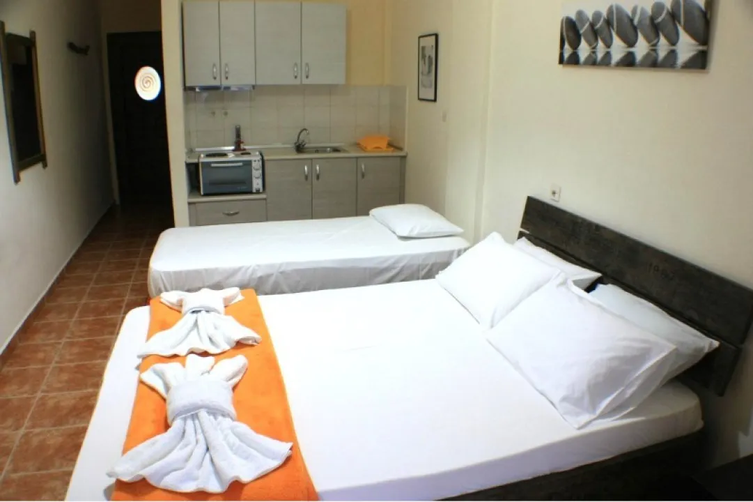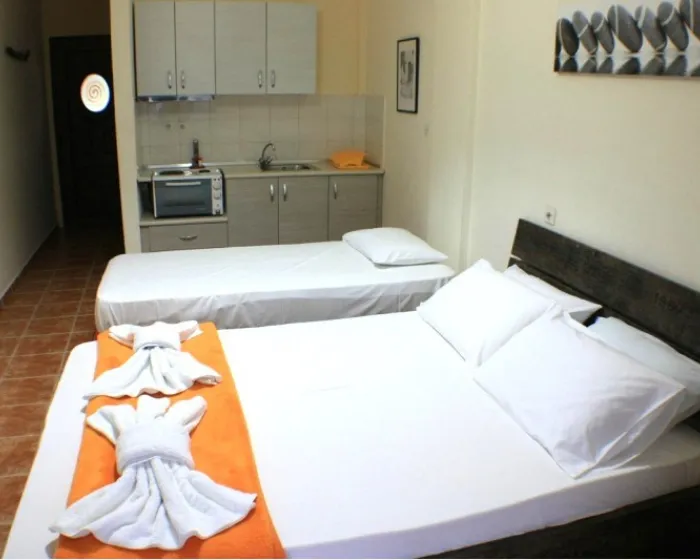 Svaka smeštajna jedinica poseduje osnovno opremljenu kuhinju sa mini šporetom, kupatilo, terasu, TV i klima uređaj čije je korišćenje uključeno u cenu najma apartmana