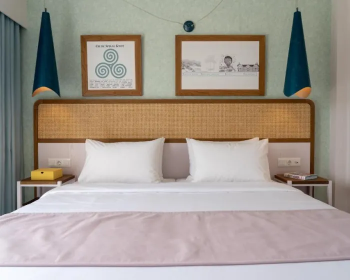 Standard deluxe soba sa balkonom, na prvom ili drugom spratu, sa pogledom na baštu ili more, namenjene za do 3 osobe (francuski ležaj ili 2 odvojena kreveta sa pomoćnim ležajem metalne konstrukcije).