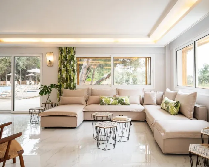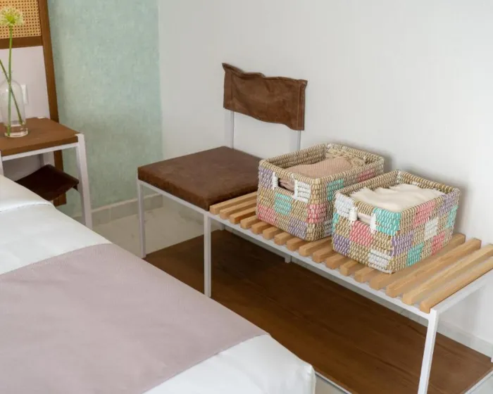 Family deluxe apartmanSoba sa dve odvojene prostorije, medjusobno odvojene vratima (apartman): u jednoj prostoriji sa francuskim ležajem, u drugoj prostoriji sa 2 odvojena ležaja. Nalaze se na 1. ili 2. spratu sa pogledom na baštu ili more. Sobe imaju komarnike i balkon. Namenjene su za boravak do 4 osobe.