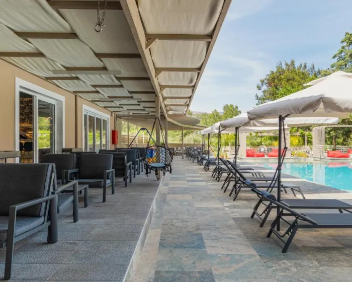 recepcija, lobby, restoran, otvoreni bazen, suncobrani i ležaljke pored bazena, wifi internet, bašta, bar, dečije igralište, rent a car, stoni tenis, parking